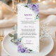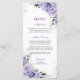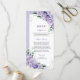 Personnalisez facilement et rapidement cette carte de menu fine et argentée avec une fleur de lilas violet double face et des roses lavande, en cliquant simplement sur le bouton Modifier à l'aide des outils de conception pour modifier le texte, la formulation, le style de police, la taille de police, la couleur de police, ajouter plus de texte, déplacer ou supprimer des images. Personnalisez-la pour l'adapter à votre occasion. Parfait pour les mariages, les douches de mariée, les Quinceañeras, les 16 ans, les 18 ans, les Bat Mitzvah, les bals de débutante, les baptêmes et plus encore ! Articles assortis disponibles en magasin ! (c) Ever After Wedding