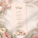 Ce menu de mariage rose poudré met en valeur des accents floraux doux dans une palette de couleurs romantiques et discrètes. Le design sobre crée une ambiance calme et élégante pour les mariages romantiques modernes et les mariages en plein air.