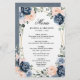 Menu mariage géométrique floral bleu Dusty avec d'élégants bouquets de marine / bleu Dusty, blanc, blush, rose pêche et sauge vert eucalyptus feuilles et élégant cadre géométrique neutre parties scintillant. Veuillez me contacter pour toute aide sur la personnalisation ou si vous avez besoin d'un autre produit avec ce design.