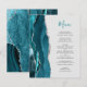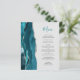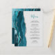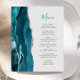 Le bord gauche de ce menu de mariage élégant et moderne présente une bordure d'agate aquarelle bleu sarcelle taillée avec une fausse étincelle argentée. Le texte personnalisable combine un script manuscrit sarcelle et une police copperplate gris charbon sur un fond gris pâle. Le verso présente un dessin assorti d'agate sarcelle et argent.