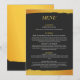 Ajoutez une touche raffinée à vos tables de réception avec le menu de mariage Midnight Gold, un présentoir élégant et sophistiqué qui complète une décoration de mariage haut de gamme. Doté d'un riche fond noir avec des accents dorés radieux et une typographie blanche et or claire, ce papier présente vos sélections de menu avec clarté et élégance. Parfait pour les mariages en noir et blanc, les célébrations en soirée et les dîners officiels, il se coordonne parfaitement avec l'ensemble de la suite de mariage Midnight Gold pour créer une expérience cohérente et luxueuse pour vos invités.