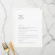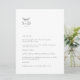 Ceci est un menu de mariage moderne blanc et noir, qui ajoutera une touche d'élégance à la décoration de votre mariage. Tout le texte est modifiable, il suffit de cliquer sur 'Personnaliser ce modèle'. Des articles assortis comme les cartes de table, les numéros de table et les pancartes de mariage sont également disponibles.