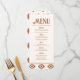 Un menu de mariage occidental moderne présentant des tons neutres chauds et des motifs audacieux inspirés du sud-ouest. Parfait pour les mariages à la ferme, dans le désert ou en plein air avec une atmosphère western semi-formelle.