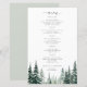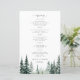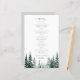 Modèle de menu de mariage élégant et moderne avec typographie tendance, nature, sauge verte, forêt de pins, destination budget, abordable, avec calligraphie chic et arbres aquatiques à l'aquarelle.