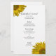 Personnalisez le joli menu de mariage tournesol jaune avec les détails du repas que vous servirez lors de votre bridal shower d'été ou d'automne, de votre brunch de mariage ou de votre réception de mariage en ajoutant la salade ou le premier plat, l'entrée ou le deuxième plat et le dessert ou le troisième plat. Personnalisez-le avec les noms des mariés, le lieu de la réception et la date de l'événement. Ce menu de mariage floral simple mais élégant présente des tournesols jaunes ornant les coins sur fond blanc. Une inspiration parfaite pour votre célébration de fête de jardin estivale.