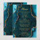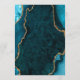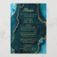 Affichez vos sélections de repas avec style grâce à ce menu de mariage élégant présentant un design en marbre d'agate bleu sarcelle rehaussé de détails dorés. Le fond inspiré des géodes crée une apparence sophistiquée, parfaite pour les mariages d'automne et d'hiver, les célébrations officielles ou les événements du soir. Conçu pour se coordonner avec votre suite de papeterie de mariage, ce menu est idéal pour présenter les plats clairement tout en ajoutant une touche luxueuse à votre décor de table. La typographie claire assure la lisibilité tout en complétant la texture de l'agate. Personnalisez facilement tous les textes pour les adapter à votre menu et aux détails de votre événement, ce qui en fait un choix magnifique non seulement pour les mariages, mais aussi pour les fêtes de fiançailles, les anniversaires et autres occasions officielles.