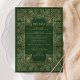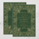 Ce menu de mariage élégant présente un cadre doré orné vintage sur un fond vert en détresse, imitant la couverture d'un livre ancien. Personnalisez le texte doré décoratif avec les détails de votre menu. Le design du cadre est répété au verso de la carte.