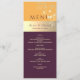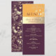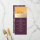 Simple, calligraphie, moderne, élégant, tons de bijoux, menu de mariage violet prune avec dentelle florale dorée.