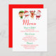 Ajoutez de l'amusement à vos tables avec ce mignon menu de Noël vert et blanc avec le Père Noël, un elfe, un bonhomme de neige et Rudolph le renne au nez rouge.