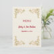 Ajoutez cette "Carte de menu d'anniversaire Golden - 50th" à vos accessoires de réception. Conçu dans des tons vifs d'or et de rouge, il est facile de personnaliser cette carte de menu avec des détails. Insérez simplement votre texte dans notre modèle étape par étape. N'oubliez pas de consulter les accessoires de fête "Golden - 50th - Anniversary" complets. Profitez !