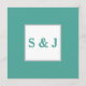 Menu minimaliste de réception de mariage turquoise et gris. Tous les détails peuvent être customisés à votre jour de mariage. Le style de police et la couleur sur le devant peuvent être customisés aux couleurs de votre mariage. Le monogramme initial au dos de la carte peut être customisé pour correspondre à l'avant.
