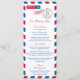 Design de papier airmail rayé rouge et bleu pour votre menu de mariage de destination. Si vous avez besoin de modifications de conception ou de mise en page pour mieux répondre à vos besoins, veuillez envoyer un e-mail à paula@labellarue.com AVANT DE PERSONNALISER OU DE PASSER VOTRE COMMANDE afin qu'un nouveau modèle puisse être créé pour vous.