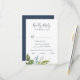 Cette carte de choix de menu verdoyant d'été RSVP est parfaite pour un élégant mariage du milieu de l'été. Le design botanique présente un agencement luxuriant d'eucalyptus couleur aquarelle peint, de verdure et de feuilles verts avec de subtils ressorts de fleurs roses rousses. Cette carte de réponse mariage demande aux clients quel repas ils souhaitent à la réception.