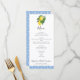 Cet élégant design citron d'agrumes et carrelage bleu méditerranéen peut être personnalisé avec vos éléments de menu.