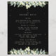Un menu des boissons/bar de mariage hivernal noir. Avec une bordure de neige baies et d'eucalyptus peints à la main sur le devant et une couronne sur le dos. Tout le texte est entièrement modifiable, et les points dispersés sur le devant et le dos peuvent être supprimés avant de commander si vous le souhaitez. Articles de coordination également disponibles.