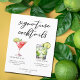 Ce menu de cocktails signature sophistiqué présente une typographie noire simple au-dessus de 2 de vos boissons préférées et de leurs ingrédients pour votre bar de mariage côtier. Un Cosmopolitan chic et un dessin de gin tonic ajoutent une touche amusante à votre menu de bar. Complet avec les noms des mariés et la date de leur réception.