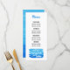 Plongez dans un voyage culinaire qui reflète la romance de l'océan avec notre "Two Less Fish in the Sea" Coastal Beach Wedding Menu. Ce menu soigneusement préparé n'est pas seulement un festin pour les sens mais aussi une célébration de l'amour quand vous commencez votre voyage en couple marié. Plongez dans le charme côtier grâce à un menu qui saisit l'essence de la plage. La palette de couleurs du blues doux et des neutres sablonneux donne le ton d'une fête détendue et joyeuse. Des illustrations de coquillages, d'étoiles de mer et de vagues douces ornent le menu, créant une symphonie visuelle qui complète le thème côtier de votre mariage. Au fil de l'offre, vous découvrirez une sélection de plats délicieux inspirés de la richesse de la mer. Des fruits de mer frais et succulents aux saveurs tropicales, chaque plat est un chef-d'oeuvre culinaire qui transporte les papilles sur les rives du paradis. La typographie et l'agencement soignés font en sorte que le menu soit aussi agréable à l'oeil que les plats en bouche. Célébrez votre union avec une touche d'élégance balnéaire, où le "Two Less Fish in the Sea" Coastal Beach Wedding Menu devient une partie chère de votre décor mariage. Ce menu guide non seulement vos invités à travers une délicieuse expérience culinaire, mais sert aussi comme un beau souvenir de votre journée spéciale, un rappel de l'amour aussi vaste et profond que l'océan lui-même.