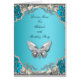 Menu Diner Card Silver Blue Butterfly Floral Mariage Menu Carte Programme Numéro de tableau Carte