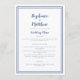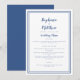 Un menu de mariage simple et élégant avec une bordure double cadre croustillante de couleur bleu marine classique sur un fond blanc épuré. « Menu de mariage » apparaît dans un script raffiné au-dessus d'une mise en page minimaliste 5×7 qui met en valeur chaque plat avec une typographie traditionnelle. Le dos bleu classique uni ajoute une touche intemporelle et moderne aux dîners de répétition ou aux tables de réception formelles. Personnalisez avec le texte de votre événement pour une présentation soignée et coordonnée.