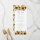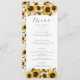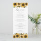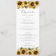 Carte de menu de dîner de mariage floral rustique avec illustration aquarelle de tournesols jaunes avec baby's breath.