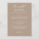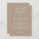 Réglez un ton raffiné pour "La Nuit Avant" avec cet élégant menu de dîners de répétition dans une palette taupe douce. Conçue pour les couples qui aiment les lignes épurées et la simplicité moderne, cette carte au menu minimaliste beige fumée est parfaite pour des soirées mariage neutres, contemporaines ou aux tons terre. Idéal pour les dîners de répétition d'automne ou d'hiver. Entièrement personnalisable avec vos détails de dîner, ce design pastel s'adapte parfaitement aux couples, hôtes ou wedding planners à la recherche de papeterie cohésive et élégante.