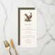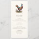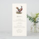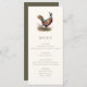 Carte de menu de dîner sur le thème de la chasse avec une illustration de faisan et une typographie élégante, dos vert olive foncé et texte personnalisé. Parfait pour un dîner champêtre, un dîner de répétition de mariage élégant, un dîner de chasse, une fête de retraite de chasse ou une célébration d'anniversaire de chasse.