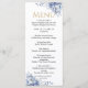 Menu Dîner élégant Dusty Blue et Gold Floral Mariage