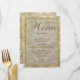 Cet élégant menu du dîner, aux tons dorés, peut être customisé. Vous pouvez modifier la police et les couleurs de la plupart du texte. Conçu par Amelia Carrie et vendu exclusivement par GlitterInvitations.com Note : Il s'agit d'une reproduction graphique ou d'une oeuvre d'art et ne contient aucune parties scintillant désordonnée.