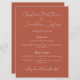 Cet événement moderne et élégant ou menu mariage dispose d'un arrière - plan en terre cuite. Les noms du couple sont imprimés dans une police de script. Vous pouvez personnaliser les menus avec vos propres options de restauration.