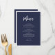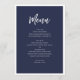 Menu Dîner mariage moderne de la Marine. Simple minimal