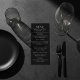 Ajoutez une touche raffinée à votre espace table avec ce menu de Mariage moderne élégant, noir et blanc, conçu avec une typographie contemporaine propre et une palette de couleurs naturelles au sol. Les tons noir et blanc cravate sans effort avec des détails minimalistes, ce qui en fait un parfait ajustement pour les mariages élégants. Simple et moderne, ce menu présente votre repas soigneusement préparé tout en rehaussant l'esthétique générale de votre décor de réception.