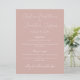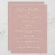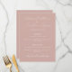 Cet événement moderne et élégant ou menu mariage est décoré d'un arrière - plan de couleur rose de couleur pâle et poussiéreux. Les noms du couple sont imprimés dans une police de script. Vous pouvez personnaliser les menus avec vos propres options de restauration.