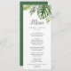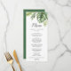 Cette carte de menu mariage de palmiers tropicaux sauvage est parfaite pour un mariage sur la plage ou à destination. Le design comprend un éventail exotique de feuilles de bananiers d'aquarelle verte, fougères, feuillage, plantes botaniques et verdure pour une sensation tropicale estivale. Ce menu peut être utilisé pour une réception de mariage, un dîner de répétition ou tout événement.