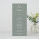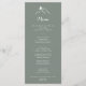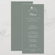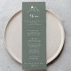 Cette carte de menu de montagne en silhouette verte et blanche est parfaite pour un mariage rustique. Le design comprend des montagnes claires peintes à la main. Ce menu peut être utilisé pour une réception de mariage, un dîner de répétition, une douche nuptiale ou tout événement.
