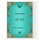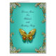 Menu Dinner Card Gold Turquoise Blue Butterfly