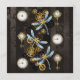 Cadres et clés d'antiquité avec des engrenages d'or et de laiton, décorés de libellules mécaniques, steampunk sur arrière - plan brun rayé.
