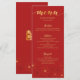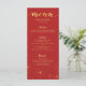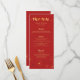 Carte de menu de dîner de mariage avec un motif de fleurs de cerisier rouges et dorées.
