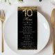 Menu du dîner d'anniversaire des 10 ans de Gold Di