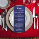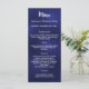 Carte de menu de dîner de fête de Noël. Personnalisez et ajoutez un nom/événement, date et le menu. Un fond bleu foncé, bleu marine, texte blanc. La couleur bleue est inégale.