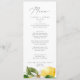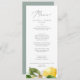 Cette carte moderne à la carte pour le dîner de mariage au citron est parfaite pour un mariage de printemps ou d'été. Le design méditerranéen rustique présente de beaux citrons aquarellés aux fleurs blanches bohème et d'élégants feuilles verts. Ce menu peut être utilisé pour une réception de mariage, un dîner de répétition ou tout événement.