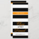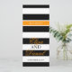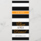 Bande simple recto blanc et noir avec touches d'orange vif menu dîner réception mariage. Personnalisez avec vos propres détails de menu.