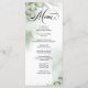 Menu mariage moderne vert or aquarelle feuillage d'eau couleur.