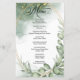 Menu mariage moderne vert or aquarelle feuillage d'eau couleur.