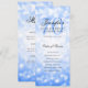 Conception élégante de "programme de fête d'anniversaire" avec effet Bokeh bleu marine et texte personnalisé.