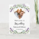 Texte de bienvenue, photo, programme, menu et une note de remerciement au dos. Décoré de fleurs de lavande et de verdure d'eucalyptus. Vous devrez peut-être ajuster le texte du menu et les noms à l'arrière en fonction de la quantité de texte dont vous avez besoin.