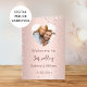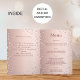 Un fond dégradé or rose avec des diamants roses. Texte de bienvenue, photo, programme, menu et un mot de remerciement au verso.
