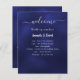 Un programme et un menu de mariage classique. Un arrière - plan bleu marine. La couleur bleue est inégale. Texte blanc. Personnalisez et ajoutez votre nom, votre date et votre programme et le menu. 1 feuille = 1 menu imprimé bord à bord.