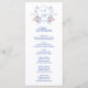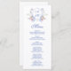 A refined and romantic wedding design featuring a dusty blue monogram crest framed by watercolor florals in pastel lavender, blush, and peach tones. The layout includes soft greenery, elegant serif and script typography, and a timeless format perfect for formal weddings.