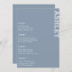 Simple Dusty Blue Personnalisé Nom d'invité Menu Mariage