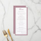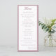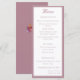 Design front features a white background to your customizable text. Heading is displayed in an elegant font in top center. Following the traditional format for a wedding menu, all text is customizable and displayed in a dusty-rose colored Nuptial font. Entire design is framed by a dusty-rose and white border.